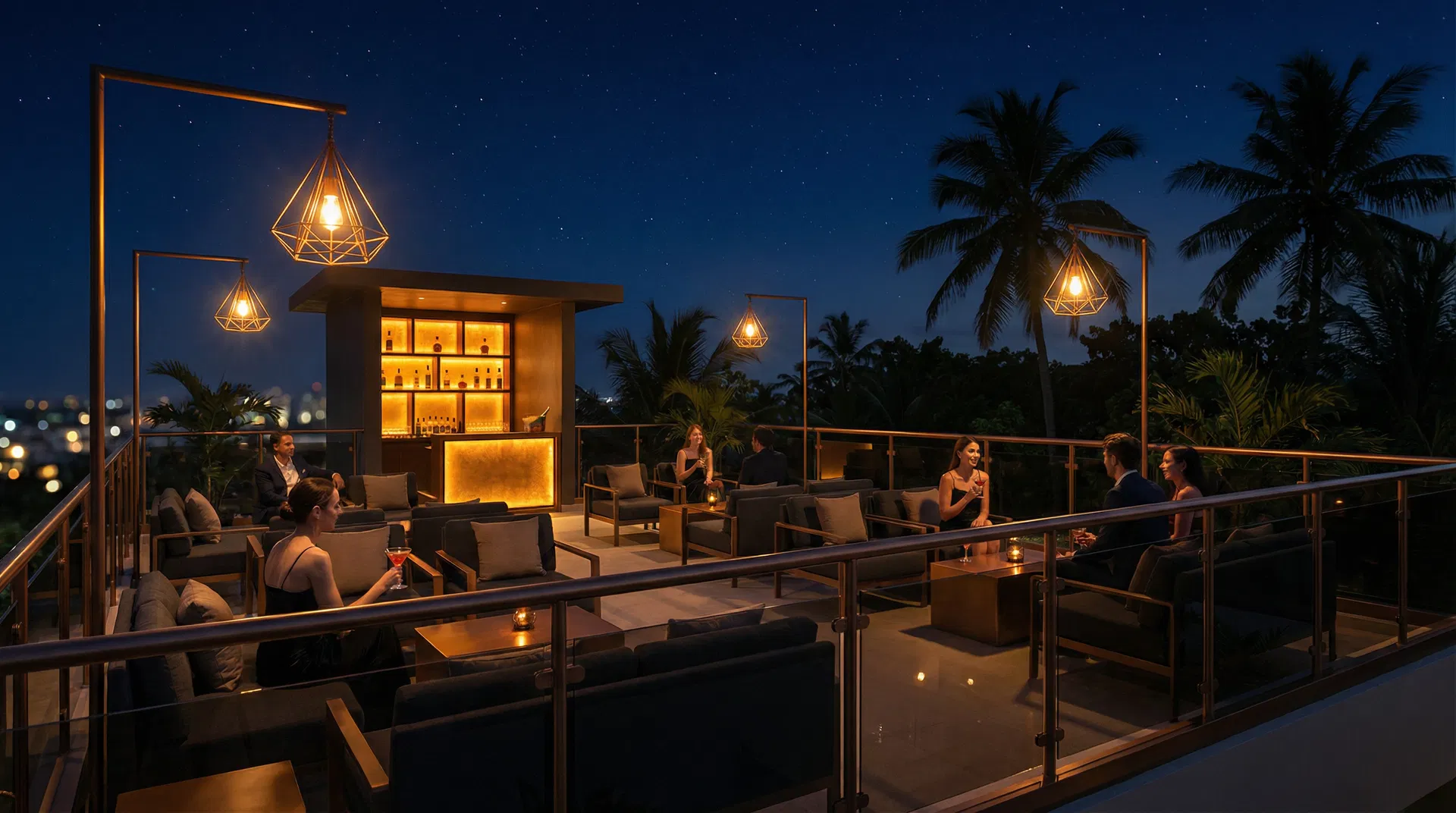 The name captures the essence of the venue: the transition from sunset sophistication to late-night warmth. It is a place where the quality of the moment matters more than the hour on the clock.